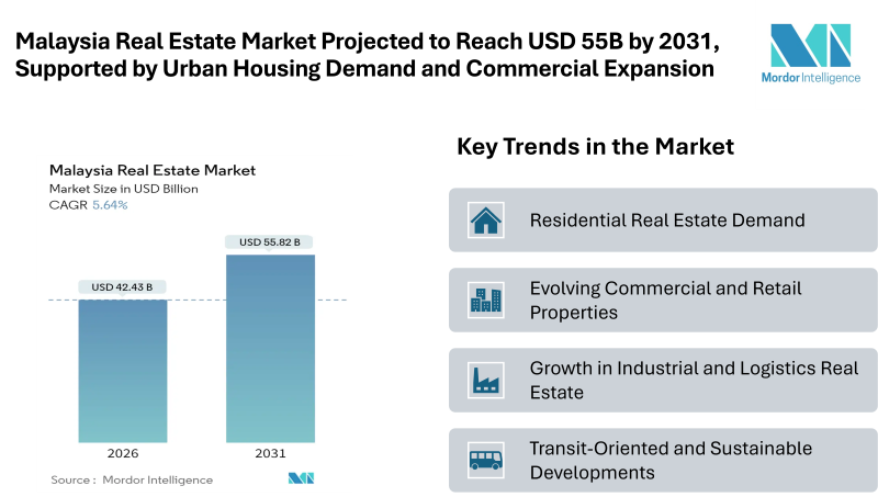 Home NEWSPRESS RELEASESMalaysia Real Estate Market Projected to Reach USD 55.82 billion by 2031, Supported by Urban Housing Demand and Commercial Expansion