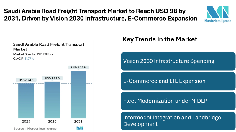 Saudi Arabia Road Freight Transport Market to Reach USD 9B by 2031, Driven by Vision 2030 Infrastructure, E-Commerce Expansion