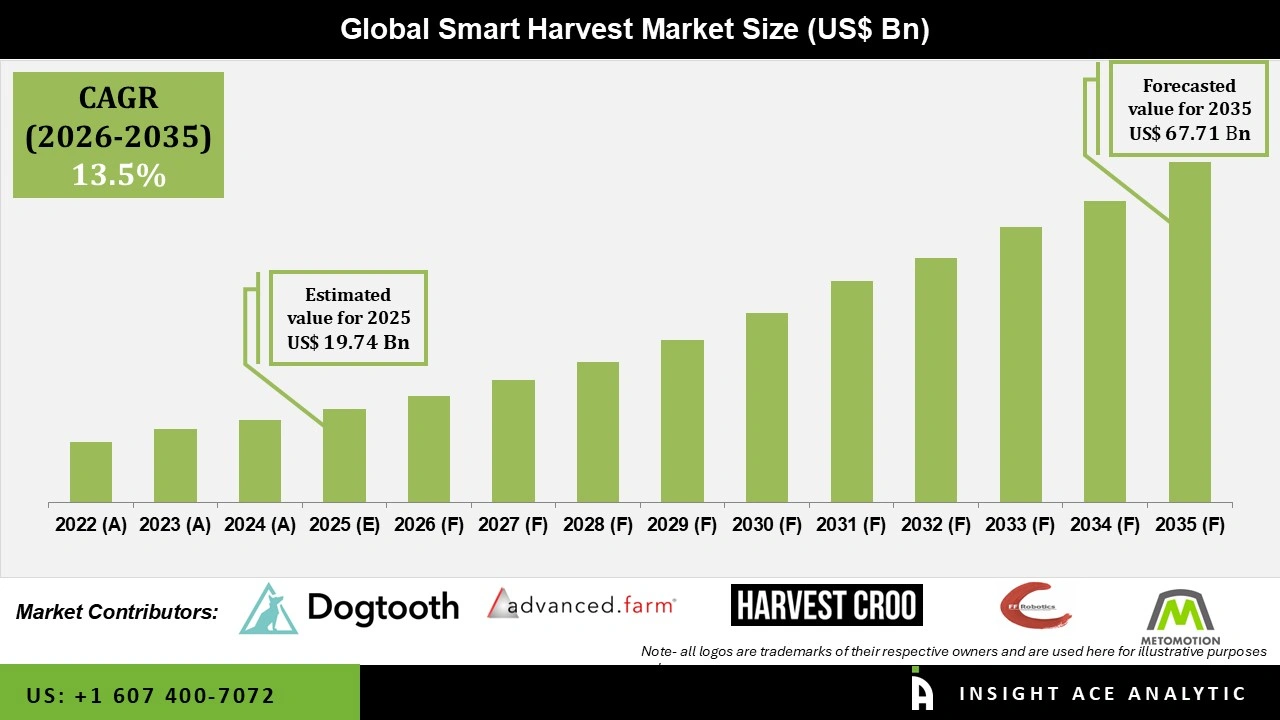 InsightAce Analytic Pvt. Ltd. announces the release of a market assessment report on theGlobal Smart Harvest Market Size, Share & Trends Analysis Report By Component (Software and Hardware (Harvesting Robots, Control Systems, Automation, Sensors, Imaging Systems)), Operation Site (On-field, Indoor, and Greenhouse), Automation Level (Semi-Automated and Fully Automated), Application (Harvesting, Cultivation, Planting, and Irrigation), Crop Type (Grains and Pulses, Fruits and Vegetables, Oilseeds and Nuts),-Market Outlook And Industry Analysis 2035″