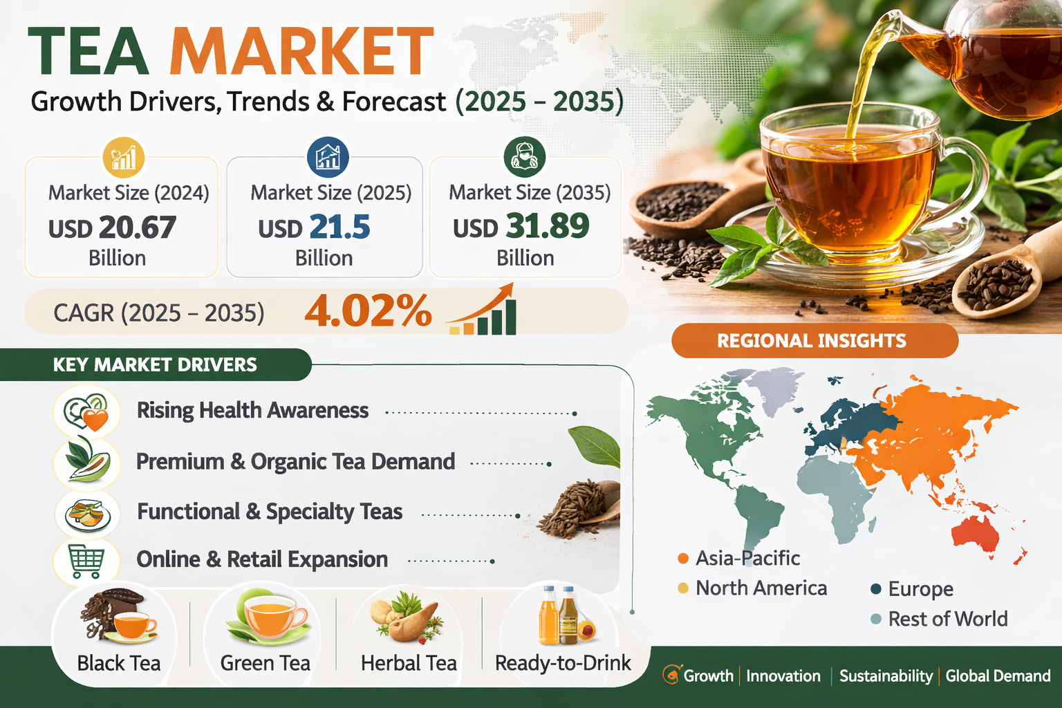Home NEWSPRESS RELEASESTea Market Size to Reach USD 31.89 Billion by 2035 | Growth Drivers, Trends, and Industry Analysis