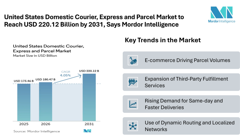 Home NEWSPRESS RELEASESUnited States Domestic Courier, Express and Parcel Market to Reach USD 220.12 Billion by 2031, Says Mordor Intelligence